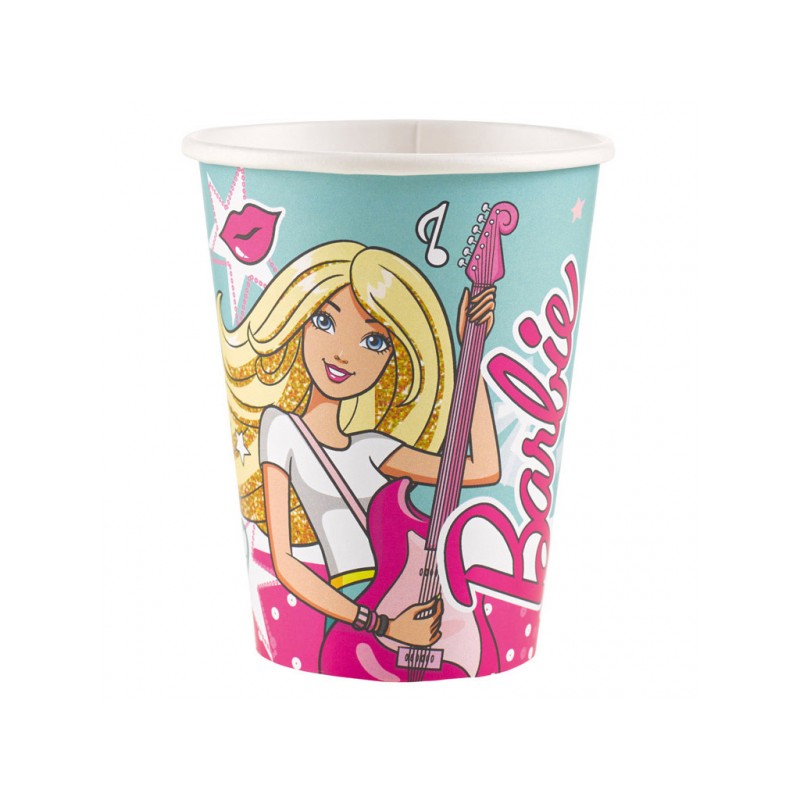 Bicchieri in carta Barbie Popstar. Abbinali agli altri articoli di questo stupendo coordinato, dove una Barbie rock star suona la sua chitarra elettrica specialmente per la tua festa di compleanno!