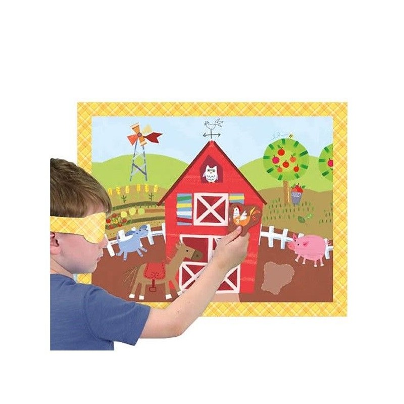 Questo gioco del coordinato Fattoria, da appendere sulla parete o porta, oltre a decorare la stanza della festa, è un'ottima idea per divertire i bimbi e farli giocare insieme durante la festa a tema Fattoria! Chi riesce ad incollare la gallina più vicino al suo posto vince!