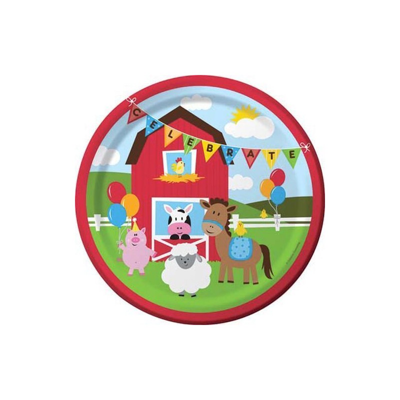 Fai una divertentissima festa con gli animali della fattoria! Abbina i piatti in carta agli altri articoli di questo bellissimo coordinato, perfetto per le feste di compleanno dei più piccini!