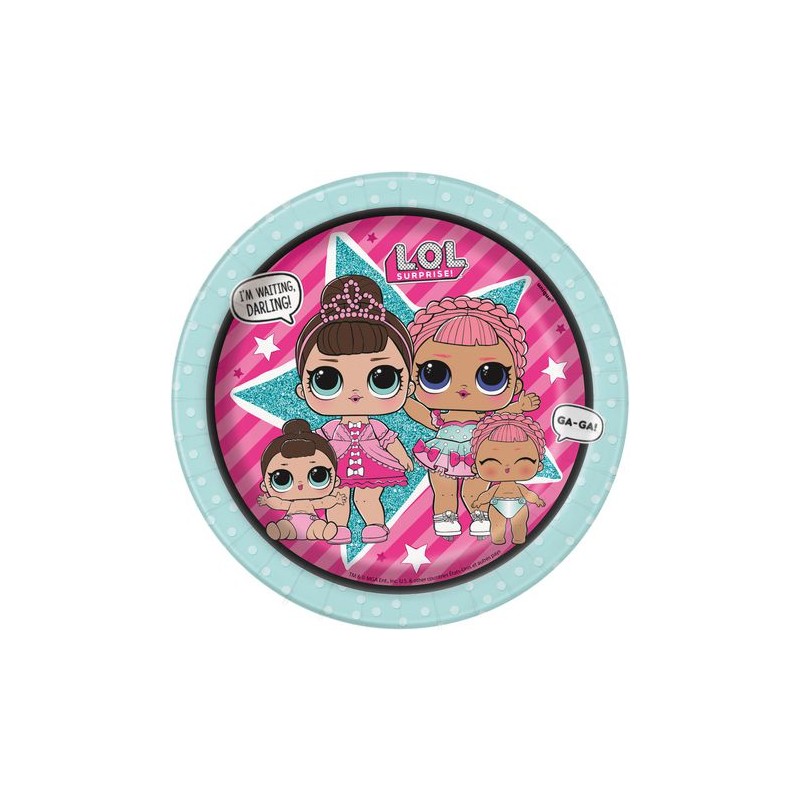Piattini in carta LOL Suprise. Abbina agli altri articoli del coordinato e decorazioni predominantemente nei colori rosa e menta per creare la tua festa a tema LOL Surprise!