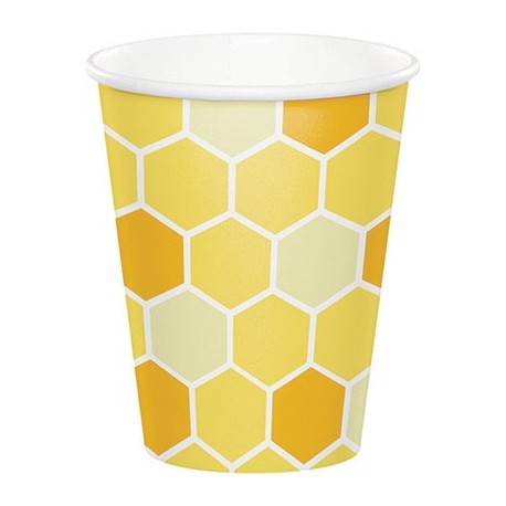 Bicchieri in carta dell'adorabile coordinato Bumblebbe Baby per festa compleanno bambina o baby shower a tema ape. Abbina agli altri articoli del coordinato e in tinta unita giallo per una decorazione dolcissima!