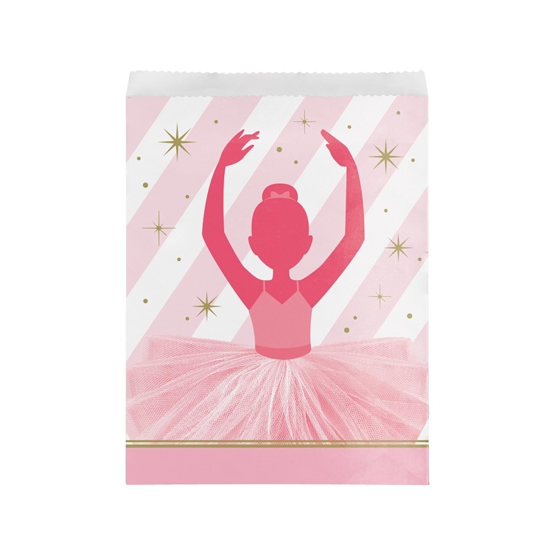 Bustine in carta a tema Ballerina, da riempire con dolcetti, caramelle o piccoli regalini e distribuire ai bambini alla fine della festa. Per chiuderle puoi utilizzare gli stickers a tema Ballerina.