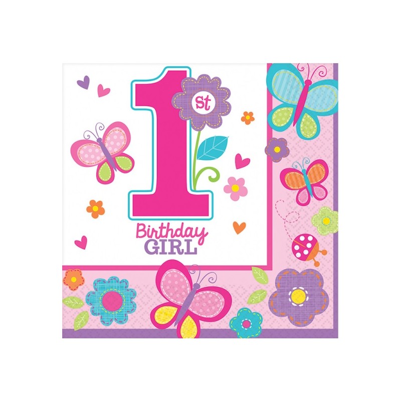 Tovaglioli in carta a tema Farfalle per primo compleanno bambina. Abbinalo agli altri articoli del coordinato Farfalle o in tinta unita rosa e fucsia per creare un tavolo stupendo per la sua festa!