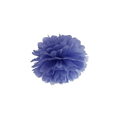 Pon pon in carta velina colore blu, per dare un tocco speciale alla decorazione della festa. Possono essere appesi al soffitto oppure collocati sul tavolo. Il pon pon è inviato piatto ed è facile da assemblare, basta aprire la sfera e separare gli strati di carta.