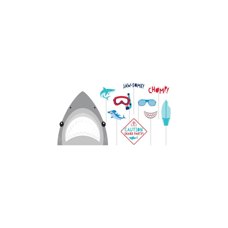 Foto stupende e diversione garantita nelle feste di compleanno a tema Squali con questo set per foto. Contiene 10 oggetti a tema squali.