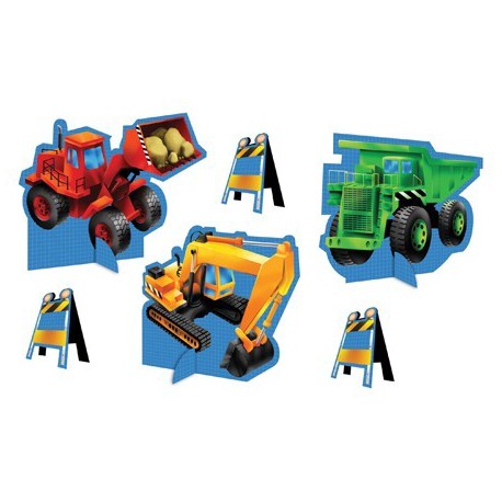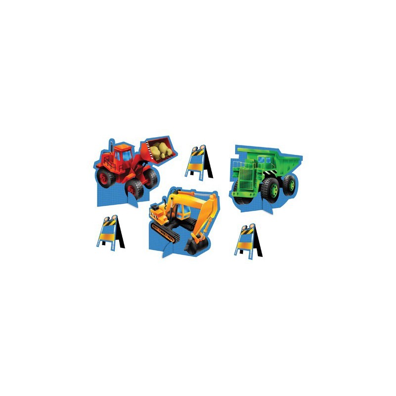 Abbina questo stupendo kit per decorazione tavola con 6 figure singole che rimangono in piede agli altri articoli del coordinato, aggiungi anche i giocattoli del tuo bimbo per una decorazione stupenda della festa nel cantiere!
