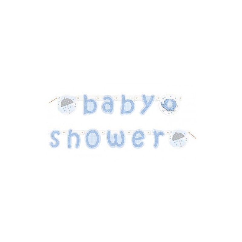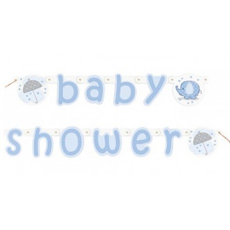 Festone in cartoncino del coordinato Elefantino Azzurro per feste Baby Shower bimbo. Abbina agli altri articoli del coordinato!