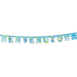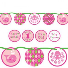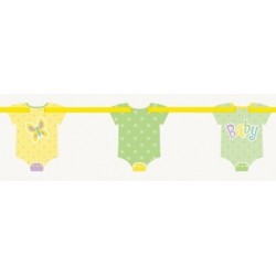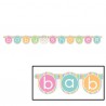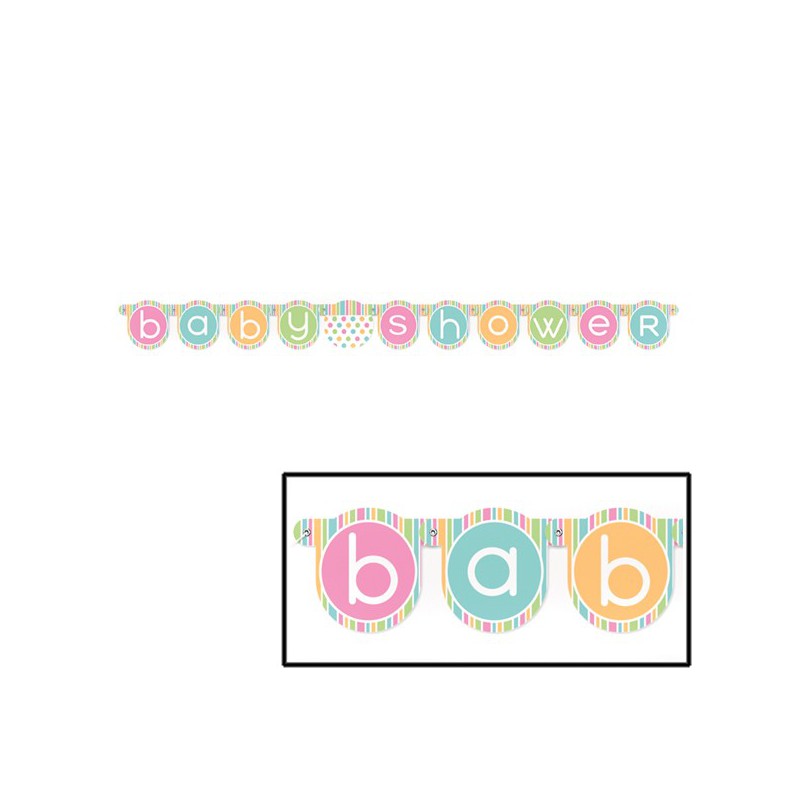 Festone snodabile in cartoncino del coordinato Pastel Baby Shower, in colori pastello a pois e righe.