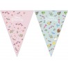 Ghirlanda di bandierine in cartoncino nei colori rosa e bianco, con le lettere per formare "Baby Girl" in oro foil, perfetta per decorare le feste baby shower bimba! Facilissimo da assemblare, basta inserire il nastro (incluso) e appendere.
