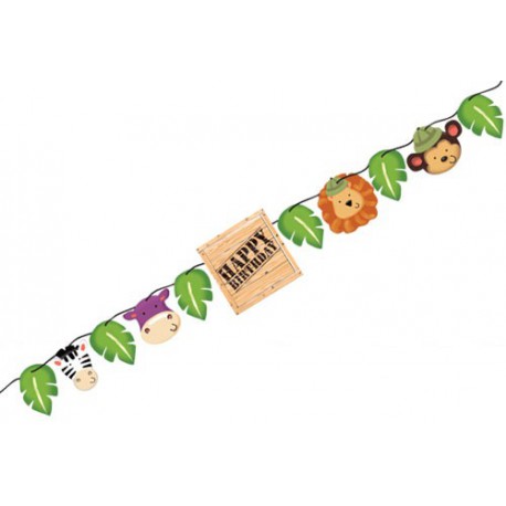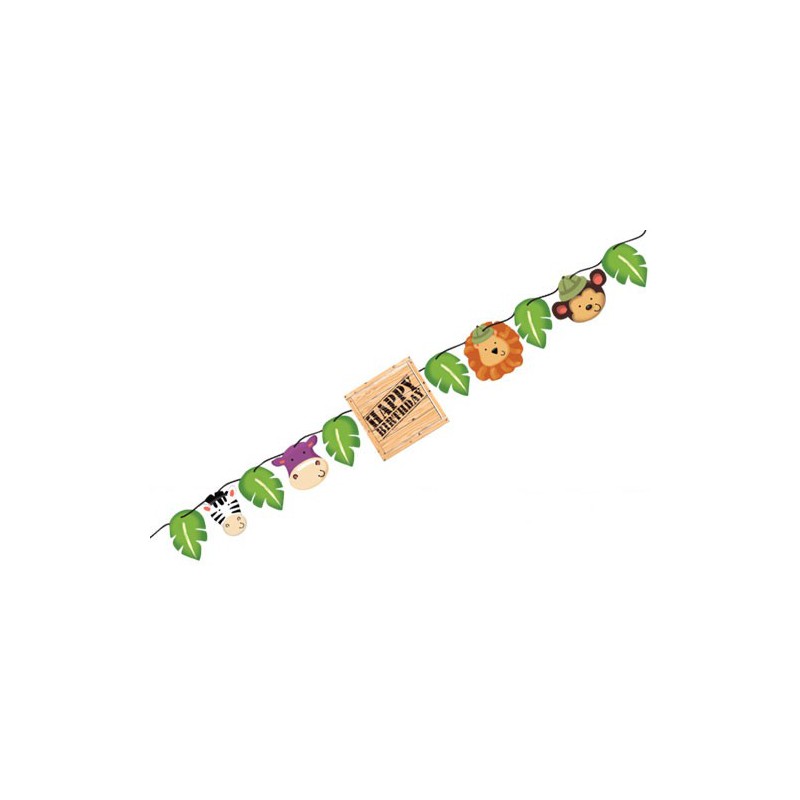Porta gli animali della savana a casa per una divertente festa compleanno a tema safari! I bambini si divertirano con questi carinissimi zebra, leone, ippopotamo e scimmietta! Abbina questo stupendo festone in cartoncino agli altri articoli del coordinato Safari, posate e palloncini nei colori del tema per una decorazione perfetta!