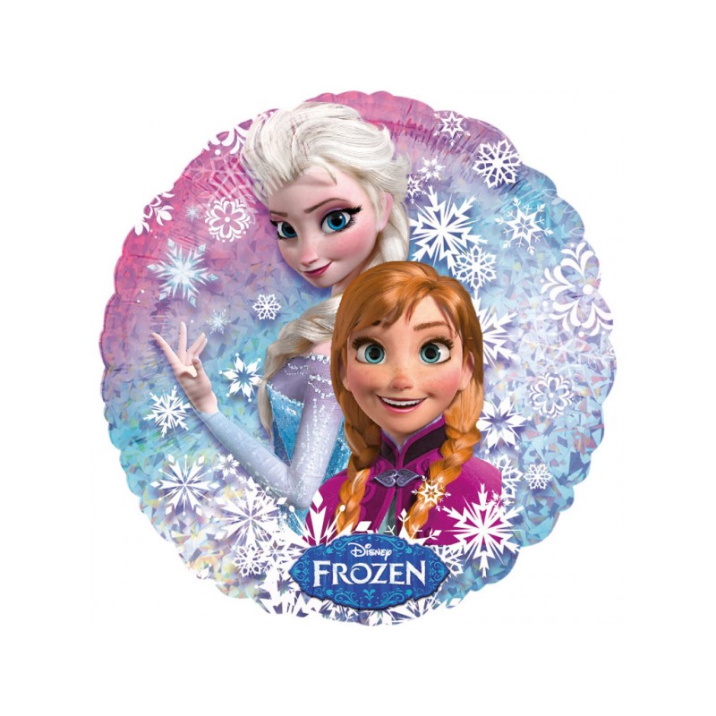 Palloncino foil Disney Frozen dai colori rosa e azzurro, decorato con Elsa ed Anna in mezzo a fiocchi di neve. Crea una decorazione stupenda per la festa a tema Frozen utilizzando questo palloncino insieme ad altri per formare un bouquet. Gonfiabile sia a elio che ad aria (utilizzando una semplice cannuccia). Si chiude automaticamente (valvola autoselante).