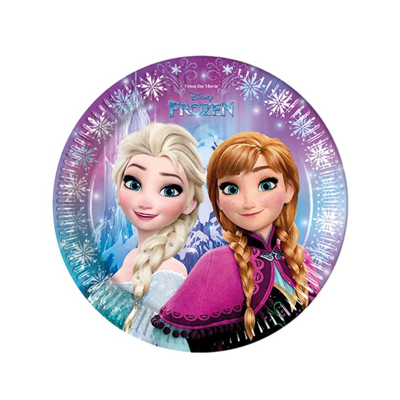 Piatti in carta del coordinato Frozen Northern Light per le feste a tema Frozen. Abbina agli altri addobbi del coordinato Frozen e accessori abbinati per una decorazione fantastica!