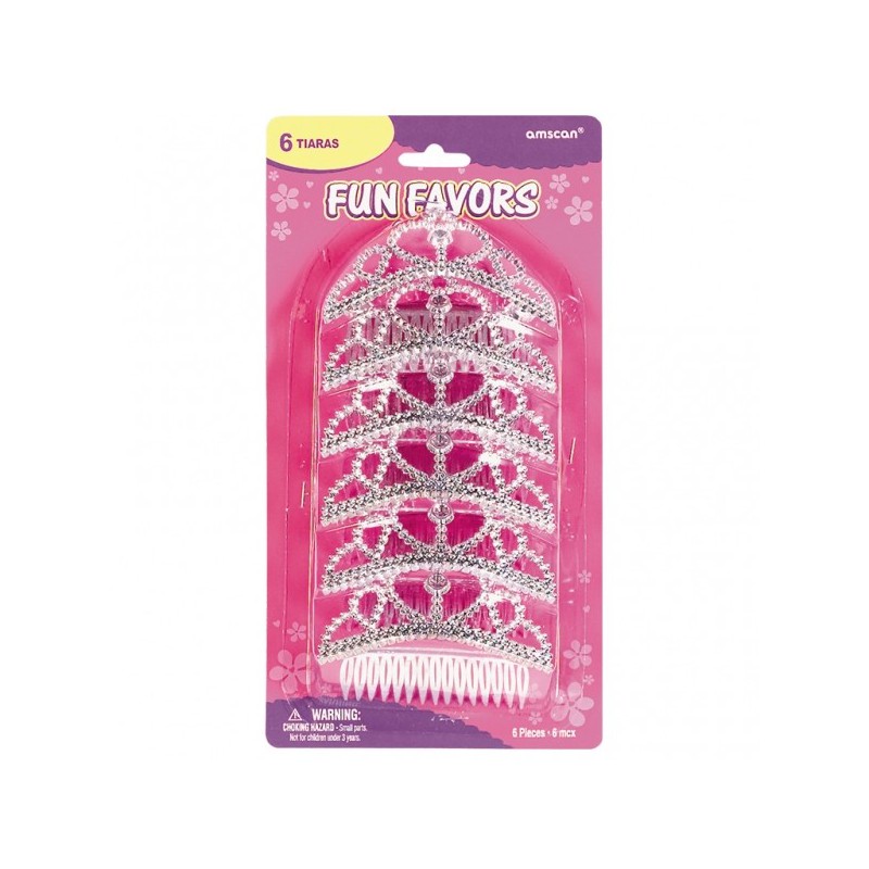 Set con 6 tiare principessa, stupende come regalini per le bambine nelle feste compleanno. Per giocare durante la festa e tenere come ricordo.