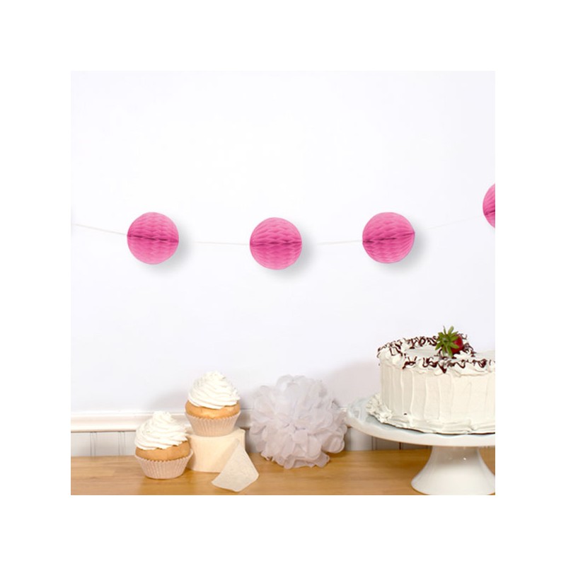 Ghirlanda di mini honeycombs in carta fucsia, per una decorazione adorabile per feste compleanno e baby shower oppure per la cameretta delle bambine!