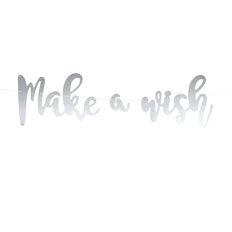 Questo stupendo banner in carta specchiata con la scritta "Make a Wish" è il tocco finale perfetto per le decorazioni di compleanno! Appendilo nella parete dietro o al bordo del tavolo, abbinandolo ad altre decorazioni. Si abbina perfettamente al coordinato "Make a Wish"!