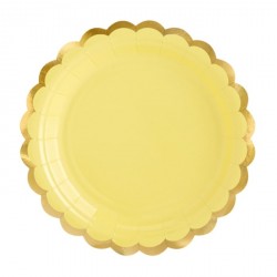Piattini in carta alta qualità nel colore giallo a pois bianco per feste compleanno o qualsiasi altra occasione speciale. Abbina agli altri articoli del coordinato in tinta unita giallo per una decorazione perfetta!