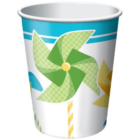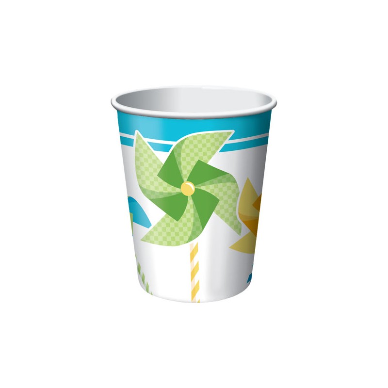Tutto il fascino delle girandole al vento per una splendida festa di compleanno per i piccoli bimbi. Abbina questi bicchieri in carta agli altri articoli del coordinato e complementi in azzurro e verde per una decorazione stupenda.