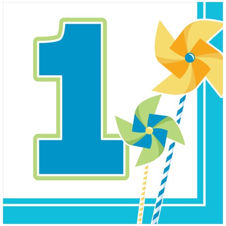 Tutto il fascino delle girandole al vento per una splendida festa di primo compleanno per i piccoli bimbi. Abbina questi tovaglioli agli altri articoli del coordinato e complementi in azzurro e verde per una decorazione stupenda.