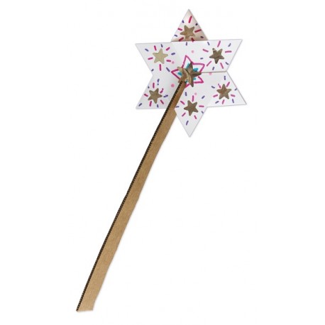 Set di 6 bacchette magiche in carta e cartoncino da montare e personalizzare. Una divertente attività creativa facile da realizzare con le bambine durante le feste di compleanno.