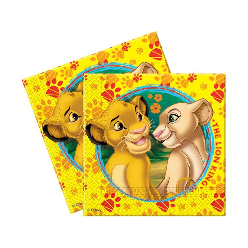 Porta il carinissimo Simba e i suoi amici alla tua festa di compleanno con questi tovaglioli in carta dello stupendo coordinato Il Re Leone! Abbina agli altri articoli del coordinato, posate e palloncini nei colori arancione e giallo per una decorazione perfetta!