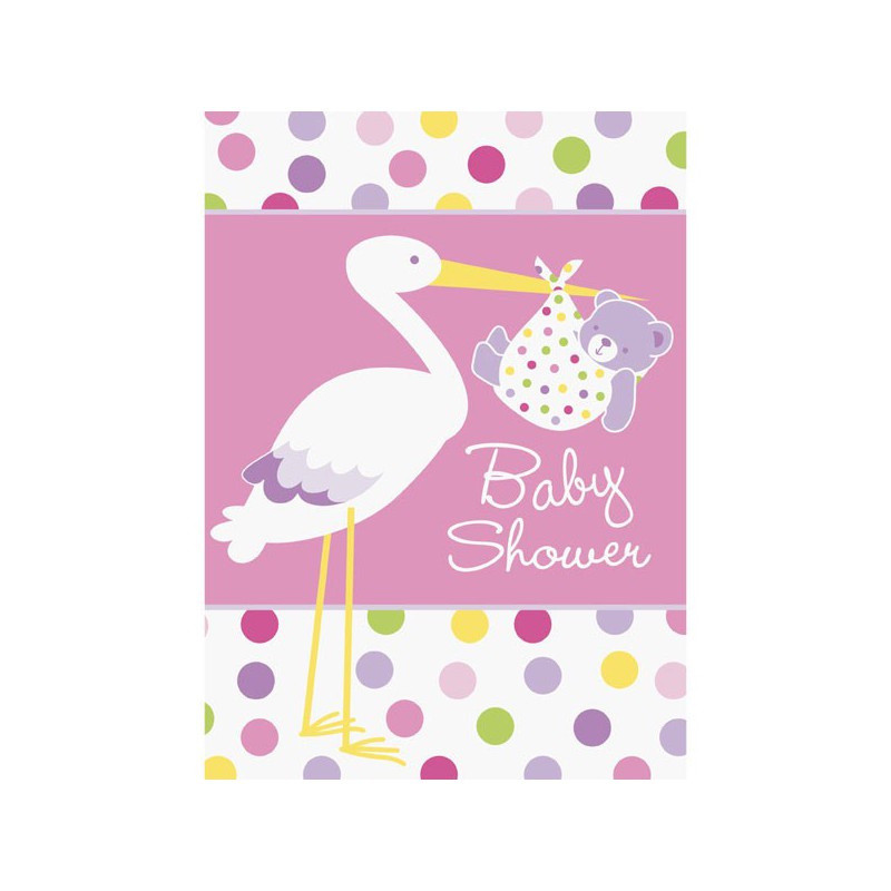 Biglietti di invito del coordinato Cicogna Rosa per feste Baby Shower bambina. Abbina agli altri articoli del coordinato!