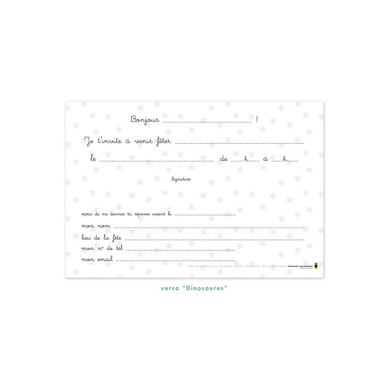 Biglietti di invito illustrati a tema dinosauri (8 modelli diversi) perfetto per invitare i bambini alle feste compleanno, specialmente quelle a tema Dinosauri! Le informazioni sono scritte in francese.