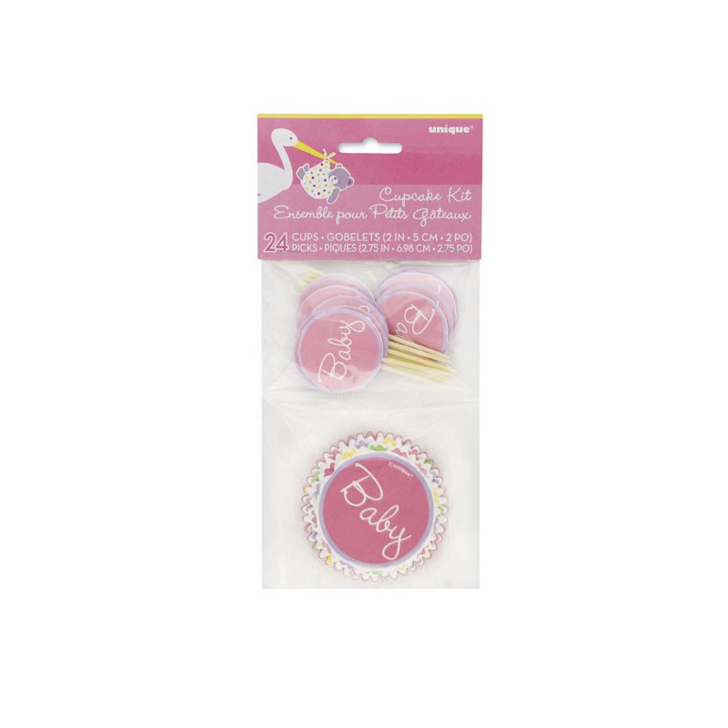 Pratico e veloce, con questo set di pirottini e stecchini decorati la decorazione dei cupcakes per il Baby Shower bambina è subito pronta! Abbinali agli articoli in tinta unita rosa.
