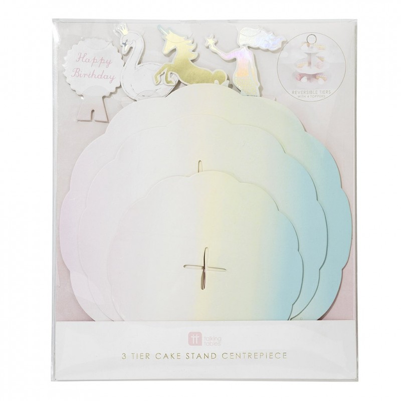 Super versatile, questa bellissima alzata per cupcake ti consente di scegliere tra 2 tonalità (rosa o azzurro) e 4 diversi topper (sirena, unicorno, cigno o "Happy Birthday"). Realizzata in cartoncino, facile da assemblare e riutilizzabile!