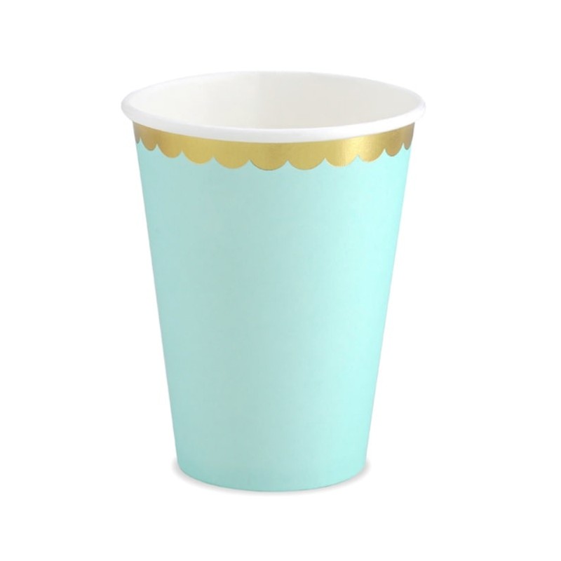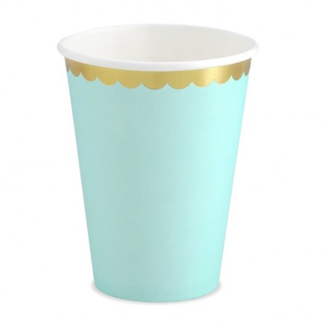 Bicchieri in carta colore menta con i bordi decorati in oro foil