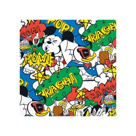 Tovaglioli per feste a tema Topolino del coordinato Mickey Super Cool, un classico rivisitato in un design moderno e divertente. Abbinali agli altri articoli del coordinato, accessori e decorazioni nei colori rosso e giallo.