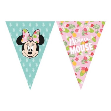 Festone bandierine in plastica Minnie Tropical. Abbina agli altri articoli del coordinato e accessori in tinta unita menta e rosa per una decorazione stupenda!