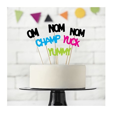 Questo set di cake topper è stupendo per decorare non solo la torta, ma i cupcake, panini e tutto il buffet della festa a tema Mostriciattoli! Utilizza anche gli altri topper del coordinato Mostri per un tavolo mostruosamente divertente!