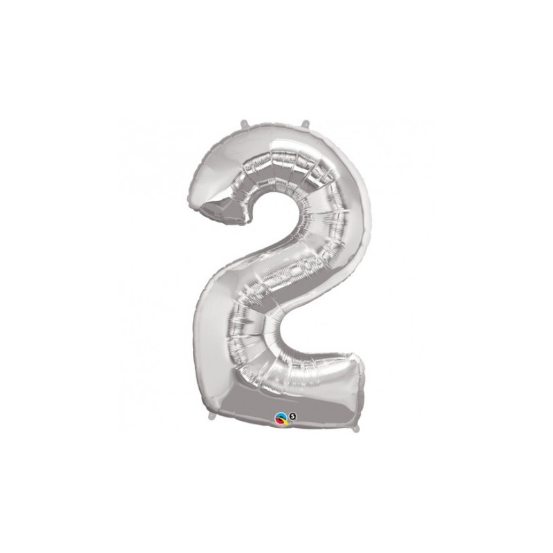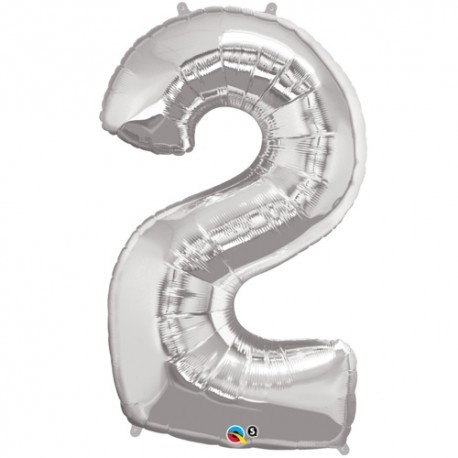 Palloncino foil numero 2 gigante nel colore argento. Puoi facilmente creare un bouquet aggiungendo altri palloncini. Può essere gonfiato sia a elio che ad aria (non è inviato gonfiato).