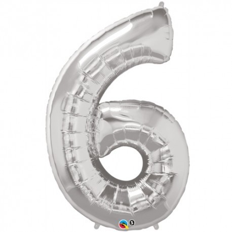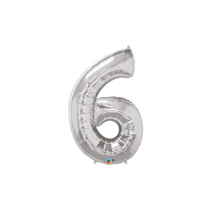 Palloncino foil numero 6 gigante nel colore argento. Puoi facilmente creare un bouquet aggiungendo altri palloncini. Può essere gonfiato sia a elio che ad aria (non è inviato gonfiato).