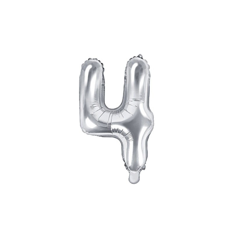 Palloncino foil numero 4 colore argento. Gonfiare ad ad aria (non è inviato gonfiato).
