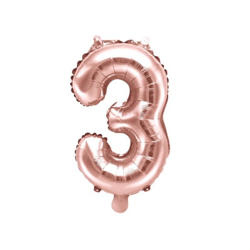 Palloncino foil numero 3 colore oro rosa. Gonfiare ad aria utilizzando una pompetta o una semplice cannuccia (non è inviato gonfiato).