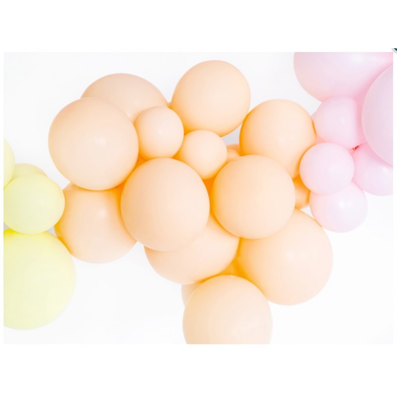 Mini palloncini in lattice di alta qualità colore pesca. Utilizzali per creare composizioni di palloncini, come ghirlanda e archi. Gonfiabili ad aria, meglio se con l'aiuto di una pompetta.