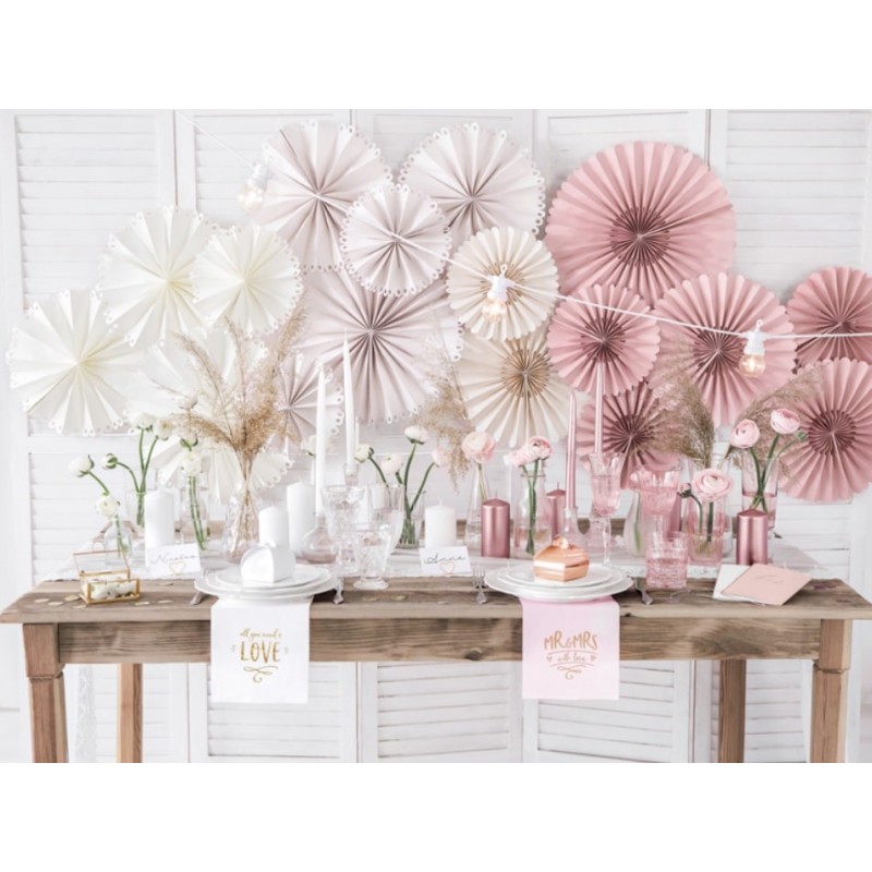 Stupenda decorazione per le feste, questo set di pendenti rosette in carta rosa pastello è perfetto da appendere nella parete dietro il tavolo o al soffitto. Ogni confezione contiene 3 pendenti di dimensioni diverse.