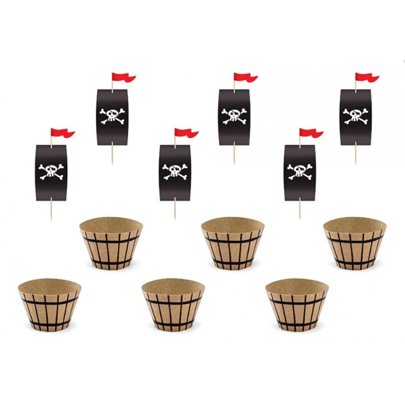 In un attimo la tavola della festa Pirati diventa stupenda con questo set per decorazione cupcake! Il set include 6 wrapper in carta kraft e 6 topper.