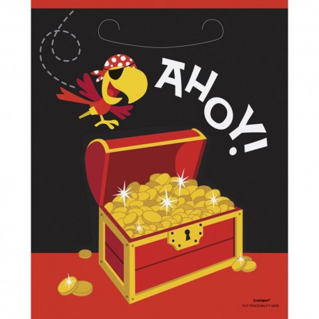 Borsine in plastica del coordinato Pirati Fun. Riempile con tanti regalini e distribuiscile ai bambini alla fine della festa, sarà un bellissimo ricordo della festa a tema Pirata. Puoi usare caramelle, cioccolatini, giochi e, per rimanere in tema, anche le bende occhio, monete dei pirati... Trovi tante opzioni nella nostra sezione Gadgets/Regalini.