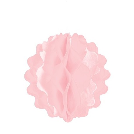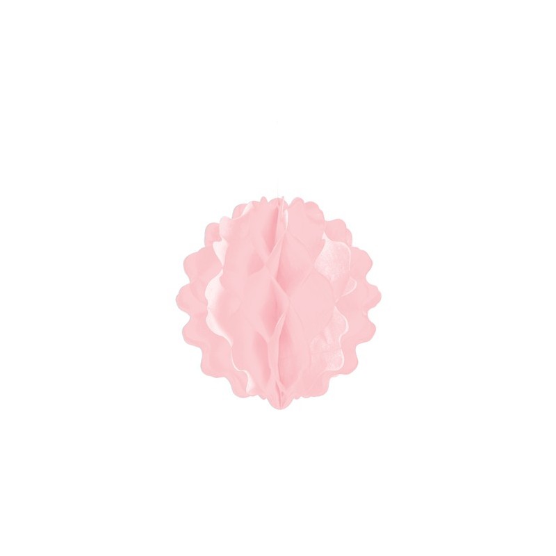 Pon pon in carta velina colore rosa pastello. Può essere appeso al soffitto oppure collocato sul tavolo. Il pendente è inviato piatto ed è facile da sistemare, basta aprire la sfera e separare gli strati di carta.