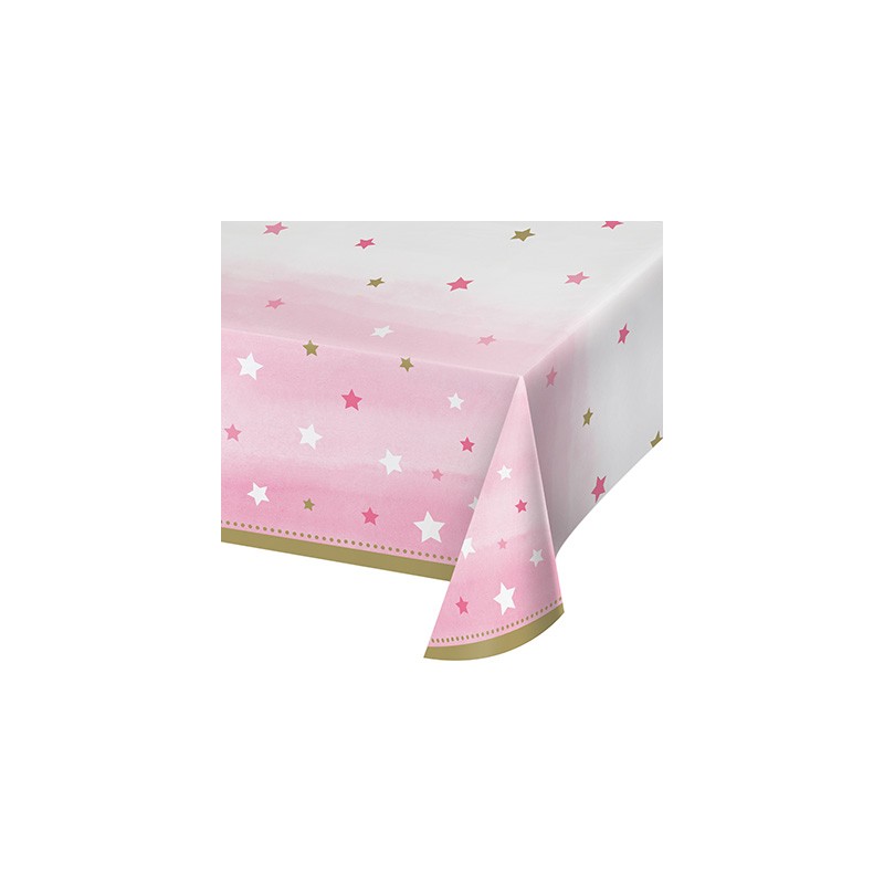 Tovaglia plastica azzurra e bianca, decorata con stelline nei colori rosa, oro e bianco. Perfetta per la festa di compleanno della tua stellina! Abbinalo a altri articoli del coordinato e accessori in rosa e oro.