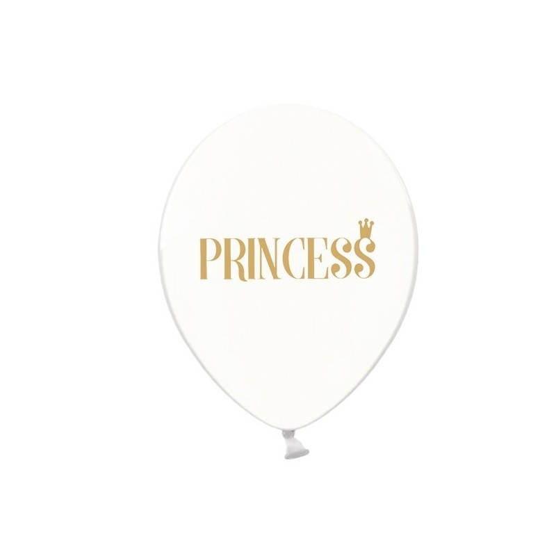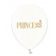 Set di palloncini in lattice trasparente con la scritta "Princess", per decorare le feste di compleanno a tema principesse. Possono essere gonfiati ad aria o elio e diventano stupendi se riempiti con coriandoli!