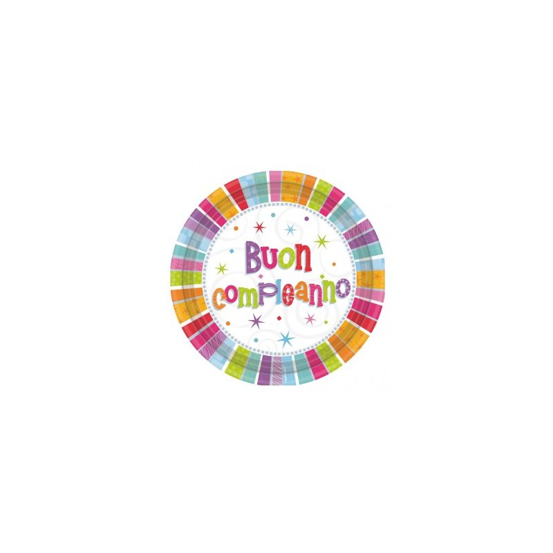 Piattini in carta del coordinato Radiant Birthday per feste compleanno. Abbina agli altri articoli del coordinato!