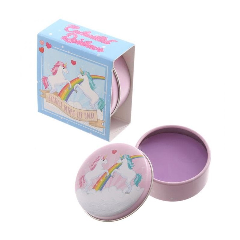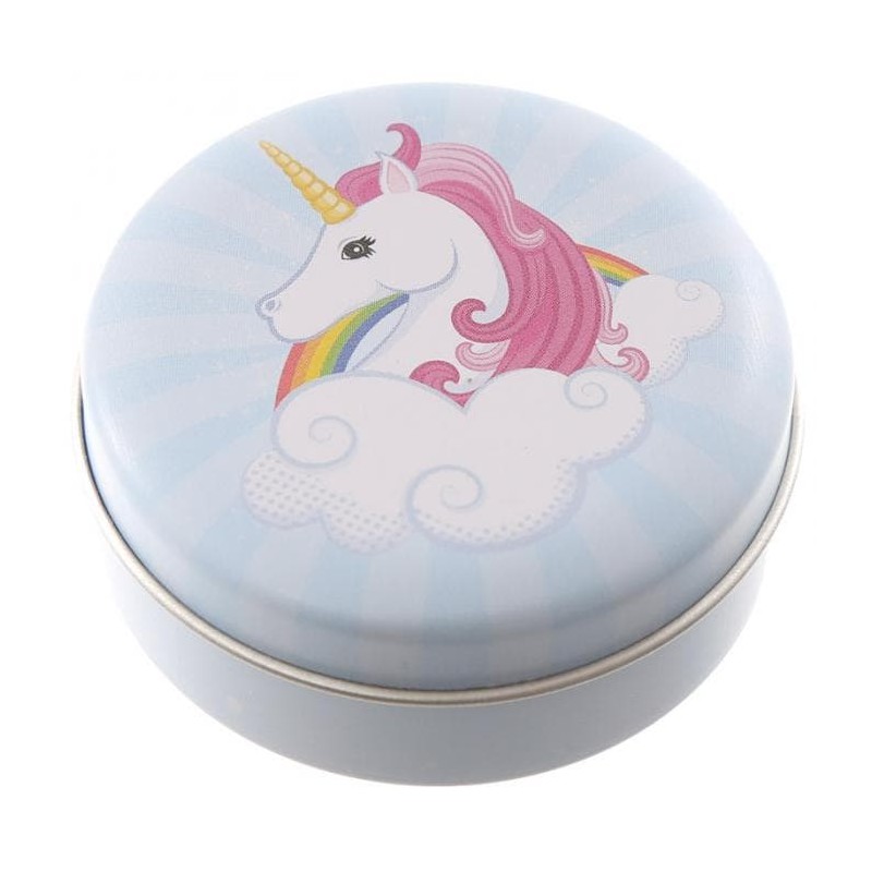 Lucidalabbra in vasetto decorato a tema Unicorno, in colori pastello rosa e azzurro assortiti. Perfetto come regalino fine festa compleanno!