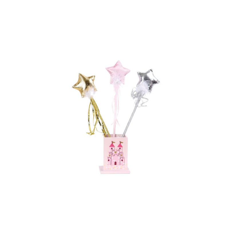 Bacchetta magica con punta a stella in stoffa morbida, per principessa o fatina. Bellissima come regalino per ogni bambina invitata alla festa! Scegli i colori tra oro, argento o rosa.