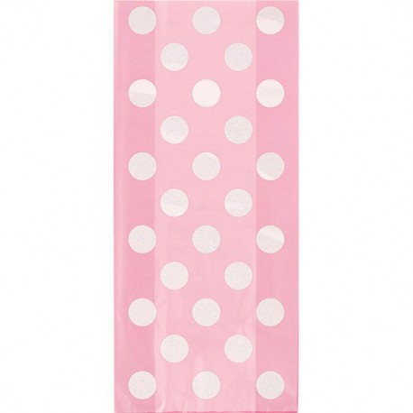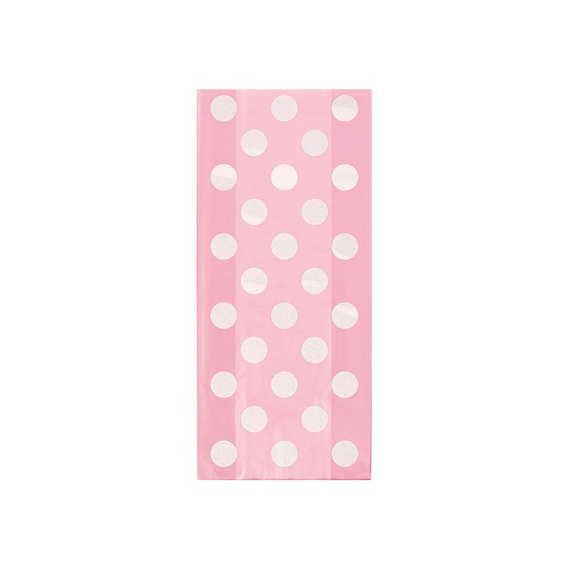 Sacchetti in cellophane rosa a pois bianco, da utilizzare per imballare piccoli regalini di fine festa agli invitati. Abbina agli altri articoli del coordinato.