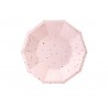 Piattini in carta rosa pastello a stelline oro. Abbinali ad altri articoli per la tavola e decorazioni nei colori oro e rosa pastello per creare la decorazione per la tua festa.
