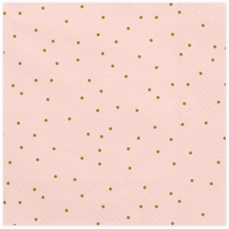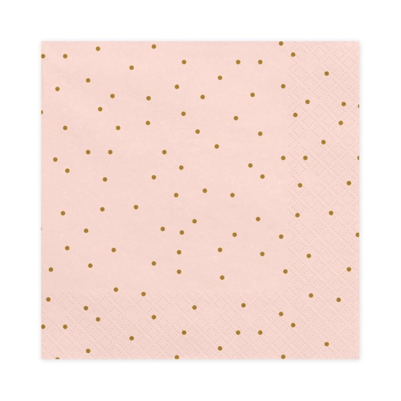 Adorabili tovaglioli in carta rosa a pois oro. Abbinali ad altri articoli per la tavola e decorazioni nei colori oro e rosa pastello per creare la decorazione per la tua festa.