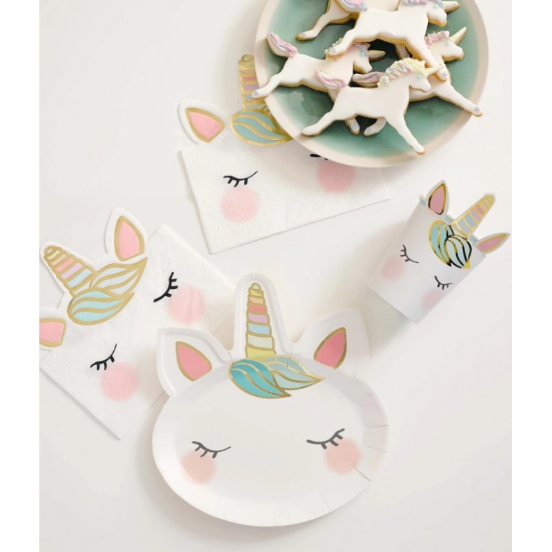 Questi piatti, stupendi per le feste a tema Unicorno, sono realizzati in carta e hanno la forma del viso di un unicorno con dettagli in oro foil. Abbinali agli altri articoli del coordinato Unicorn Face.